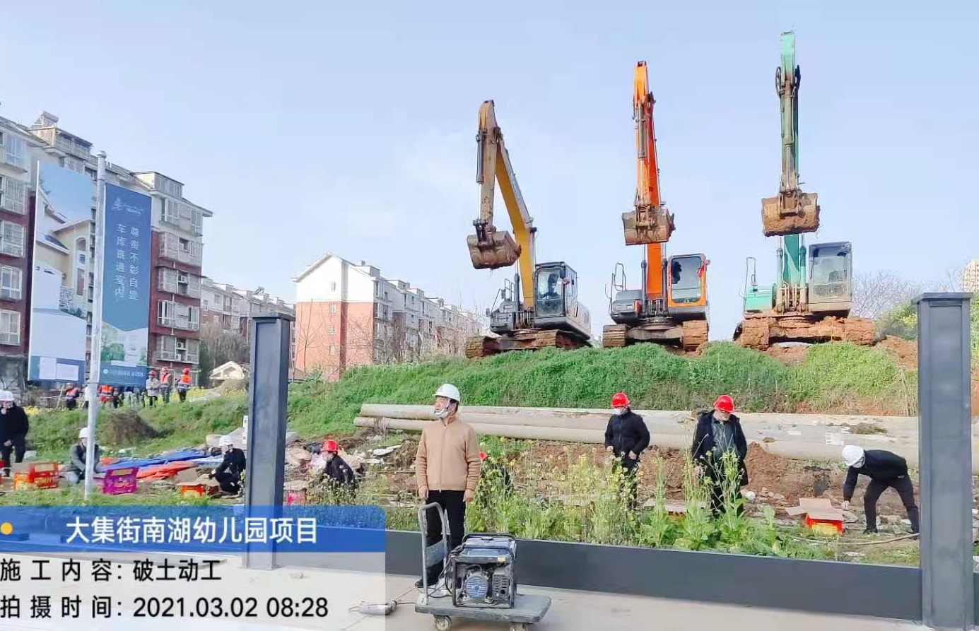 3月2日上午,伴隨著震耳欲聾的鞭炮聲,集團(tuán)副總經(jīng)理徐家富宣布破土動工,三輛挖機同時開槽破土,由集團(tuán)公司承建的南湖幼兒園項目工程正式開工建設(shè)!