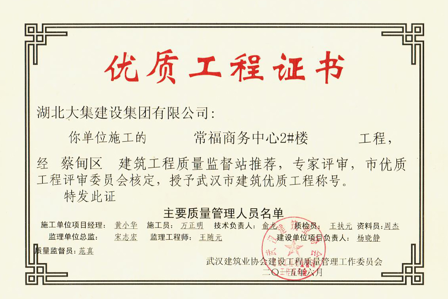 百舸爭流千帆競,長風(fēng)破浪正當(dāng)時。目前,湖北大集建設(shè)集團正以蓬勃的活力和昂揚的步伐向一流的建筑施工企業(yè)邁進。我們堅信,在全體員工的共同努力和社會各界的大力支持下,湖北大集建設(shè)集團必將以更優(yōu)質(zhì)的服務(wù)、更輝煌的業(yè)績真誠回報社會!