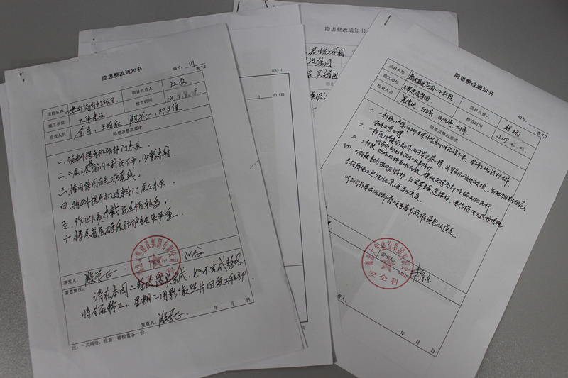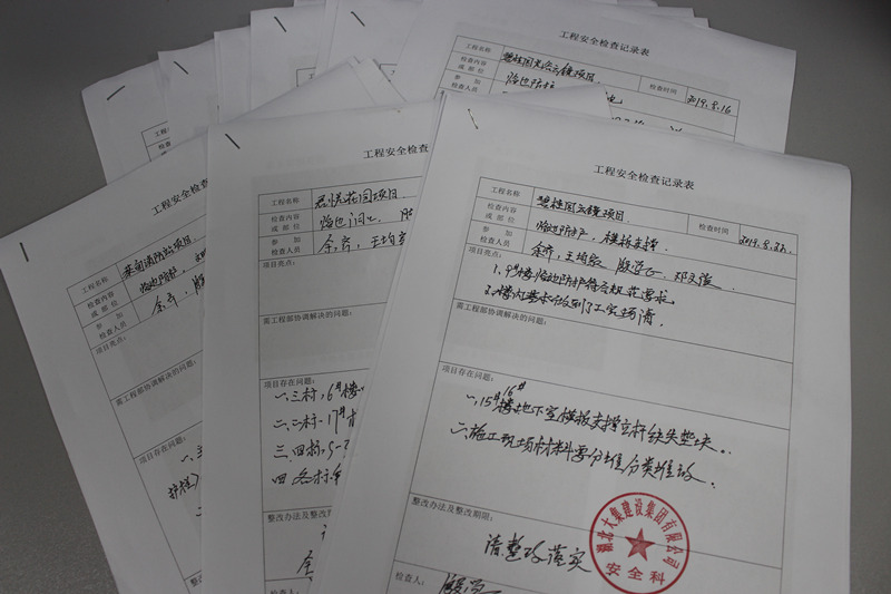 集團(tuán)工程部秉持著“隱患就是事故”的原則,踐行著“嚴(yán)、細(xì)、實(shí)”的理念,依次到泰禾君悅花園、碧桂園光谷云境、大集消防站、小集還建社區(qū)五期地下室、大集北污水提升泵站等項(xiàng)目進(jìn)行了嚴(yán)格細(xì)致的全面檢查,尤其是對(duì)危險(xiǎn)性高的深基坑、腳手架、模版支撐、臨邊孔洞、施工用電、起重機(jī)械作業(yè)、人員習(xí)慣性違章等重要部位和關(guān)鍵環(huán)節(jié)進(jìn)行重點(diǎn)排查。對(duì)發(fā)現(xiàn)的安全隱患和問(wèn)題,能現(xiàn)場(chǎng)整改的要求現(xiàn)場(chǎng)安全負(fù)責(zé)人立即整改;對(duì)于現(xiàn)場(chǎng)不能立即整改的,當(dāng)場(chǎng)下達(dá)整改通知書(shū)、檢查記錄等, 責(zé)令限期整改到位,該開(kāi)罰單的也絲毫不留情面;對(duì)重大隱患實(shí)時(shí)跟蹤監(jiān)管、待整改后進(jìn)行復(fù)查。