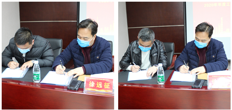 會議進行目標責任書簽署儀式。集團董事長徐濤分別與各部門負責人、分公司負責人簽訂了2021年度經(jīng)營目標責任書;集團總經(jīng)理徐遠征、副總經(jīng)理徐家富分別與房建項目、市政項目代表簽訂了2021年度目標責任書。