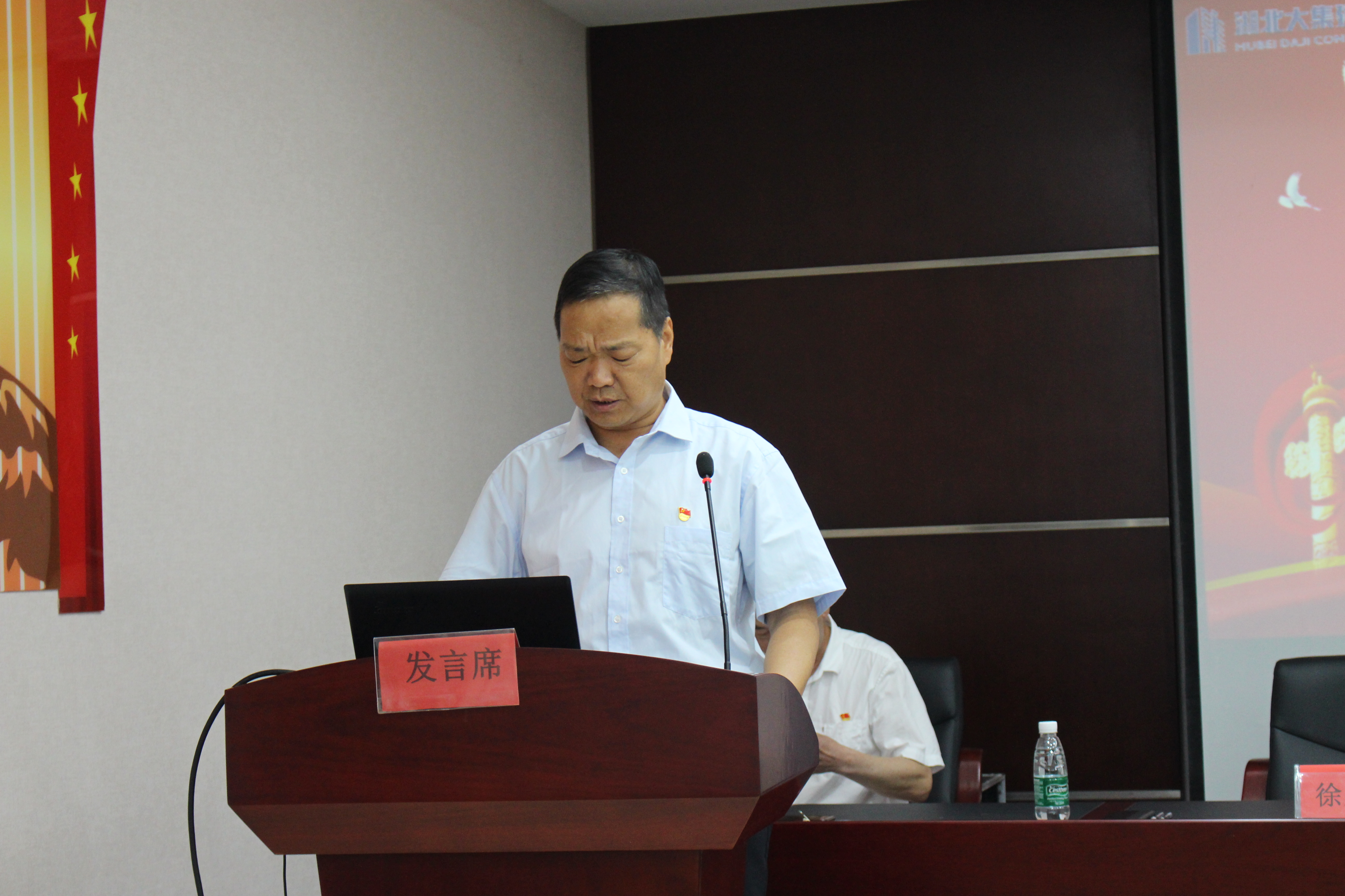 集團黨委副書記徐家富同志宣讀中共湖北大集建設集團有限公司黨委《關于表彰優(yōu)秀黨員的決定》。