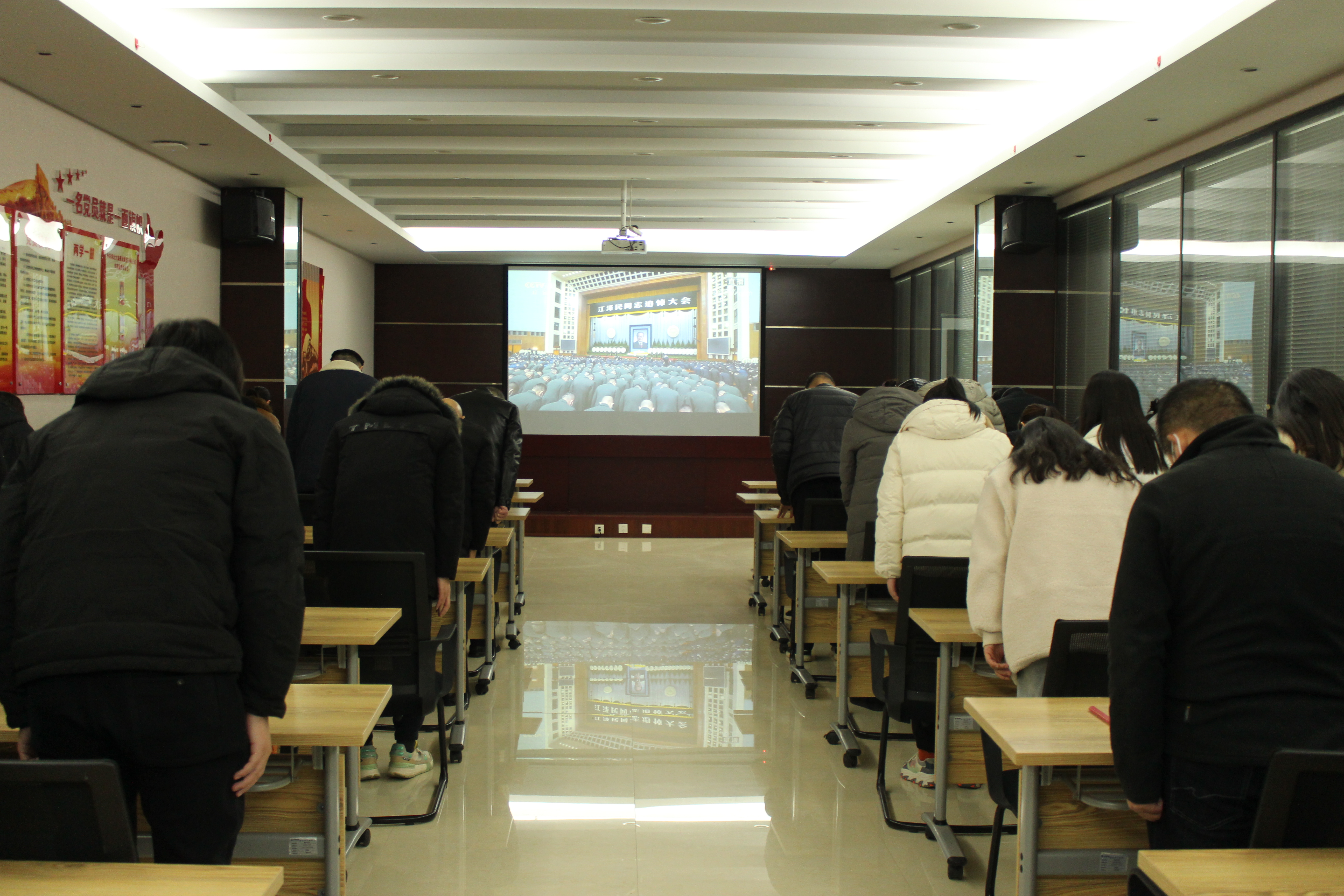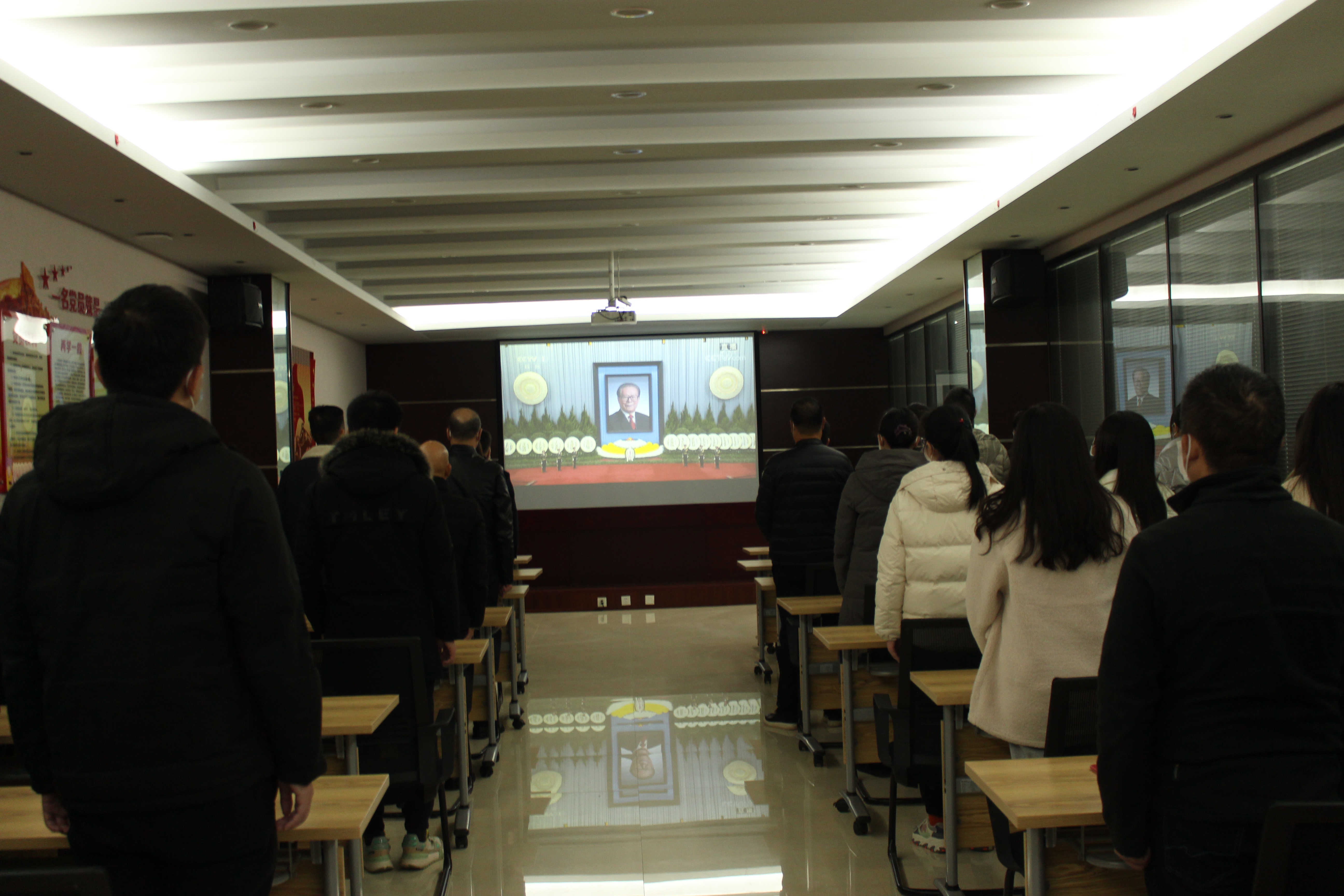 全體員工懷著悲痛的心情,為江澤民同志默哀3分鐘。大家通過直播畫面深切緬懷江澤民同志為黨、為祖國、為人民建立的不朽功勛,追思和學(xué)習(xí)他為黨和人民事業(yè)不懈奮斗的崇高風(fēng)范。