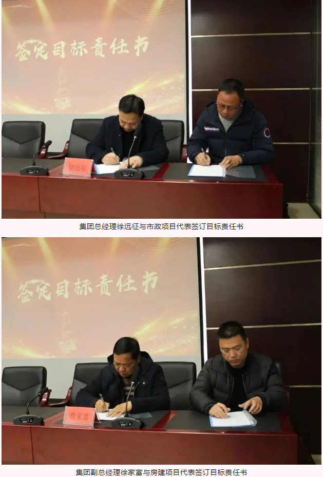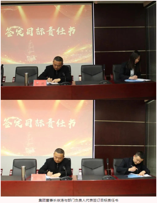 在2024年目標責任書簽訂儀式上,集團董事長、總經(jīng)理、副總經(jīng)理依次與部門負責人代表、項目代表簽訂目標責任書。責任書不僅僅是一紙文件,它承載著集團的期望與信任,代表著責任與擔當,猶如千鈞之重。