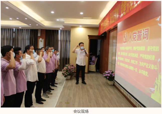 會議開始,湖北大集建設(shè)集團(tuán)黨支部書記徐遠(yuǎn)征同志帶領(lǐng)全體黨員重溫入黨誓詞。在徐遠(yuǎn)征同志領(lǐng)誓下,全體黨員舉起右拳,莊嚴(yán)宣誓,鏗鏘有力的聲音,久久響徹耳邊,共同表達(dá)了不忘初心,牢記使命,永遠(yuǎn)奮斗的堅(jiān)定決心。