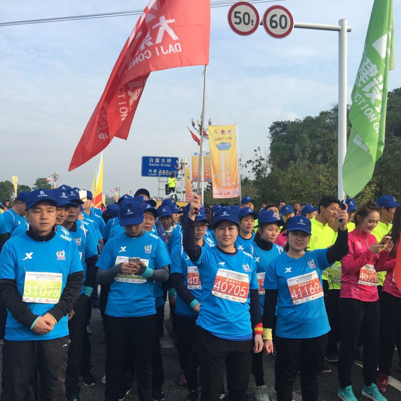 雖然下了一周的雨而且此天氣將會(huì)持續(xù)幾天,可是仍然阻擋不了大家參賽的勁頭和熱情,天不亮就早早起床直赴公司大院集合整裝待發(fā),所有參賽人員到齊后乘坐巴士前往比賽主會(huì)場(chǎng)提前進(jìn)行拉伸運(yùn)動(dòng)。我們到達(dá)目的地時(shí)天還剛蒙蒙亮,氣溫也很低,但是已經(jīng)聚集了不少參賽人員及后勤保障、治安人員,個(gè)個(gè)精神抖擻、容光煥發(fā),都期待著順利地跑出好成績(jī)!