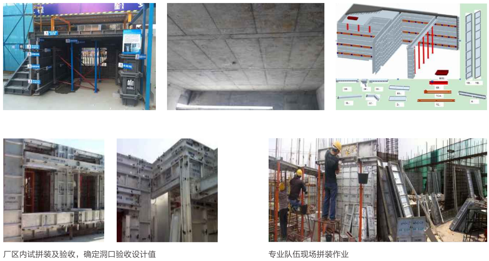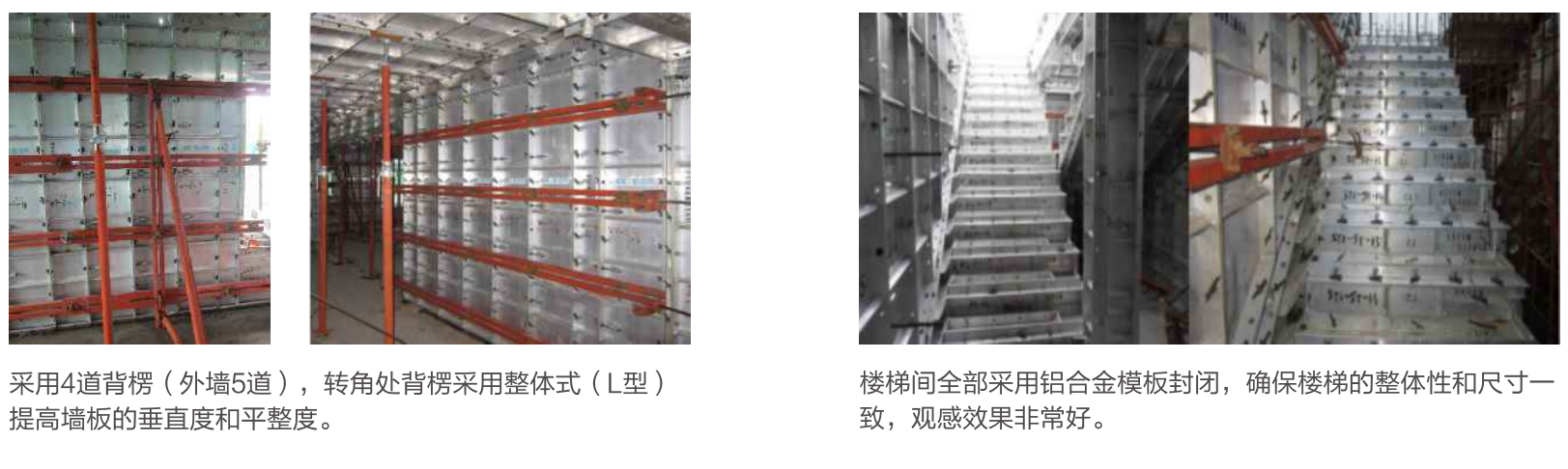 模板系統(tǒng)構(gòu)成混凝土結(jié)構(gòu)施工所需的封閉面,保證混凝土澆灌時(shí)建筑結(jié)構(gòu)成型;支撐系統(tǒng)在混凝土結(jié)構(gòu)施工過程中起支撐作用,保證樓面、梁底及懸挑結(jié)構(gòu)的支撐穩(wěn)固;緊固系統(tǒng)是保證模板成型的結(jié)構(gòu)寬度尺寸,在澆注混凝土過程中不產(chǎn)生變形,模板不出現(xiàn)漲模、爆?,F(xiàn)象;附件系統(tǒng)為模板的連接構(gòu)件,使單件模板連接成系統(tǒng),組成整體。該技術(shù)增加了混凝土的成型質(zhì)量和感觀質(zhì)量。