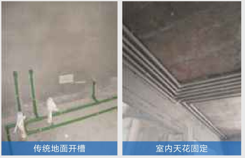 戶(hù)內(nèi)水管安裝按照以往的做法會(huì)在建筑找平層開(kāi)槽再進(jìn)行預(yù)埋,裝修完成后如遇到滲漏水很難進(jìn)行維修。為實(shí)現(xiàn)無(wú)后顧之憂,全部設(shè)置在天花,公共部位進(jìn)行吊頂掩蓋,戶(hù)內(nèi)走梁交接陰角,用木盒子裝修掩蓋,這樣不但解后期維修問(wèn)題,樓板地面不再開(kāi)槽,大大減少建筑找平厚度,使戶(hù)內(nèi)凈高空間增大。